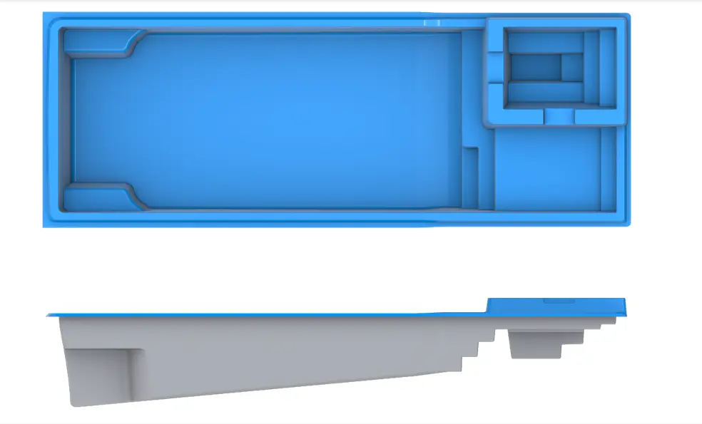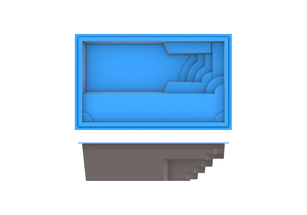 The larger version of the Cali Cove with integrated tanning ledge and deep end benches.Â